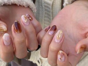 クリア感、パウダーやラメを不規則に入れたart感がおしゃれで大人気デザインです。