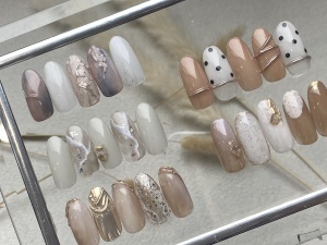 ナチュラルなカラーで仕上げたデザイン☆指先から春らしくなるようなニュアンスデザイン、春デザインです